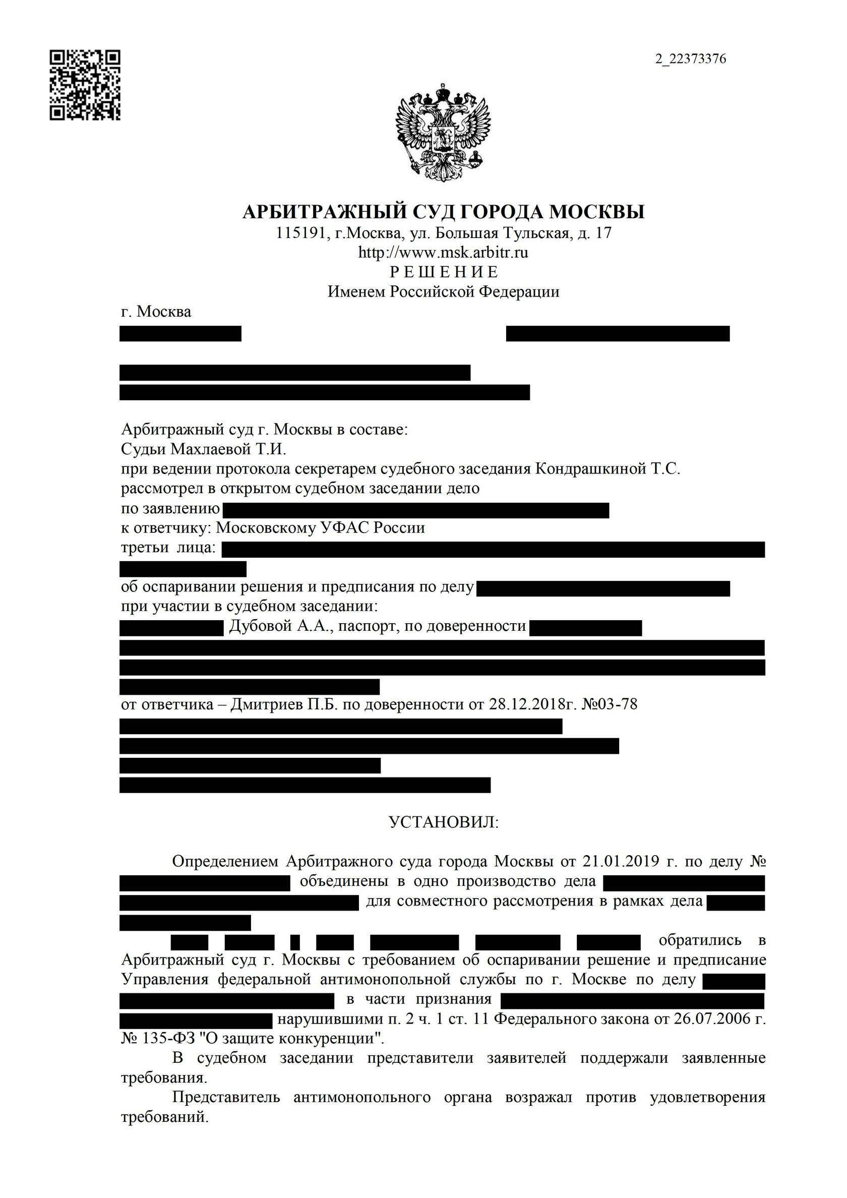 Против нашего доверителя было возбуждено административное дело по п 2 ч 1 ст. 11 Закона «О защите конкуренции». По обвинению в картельном сговоре.