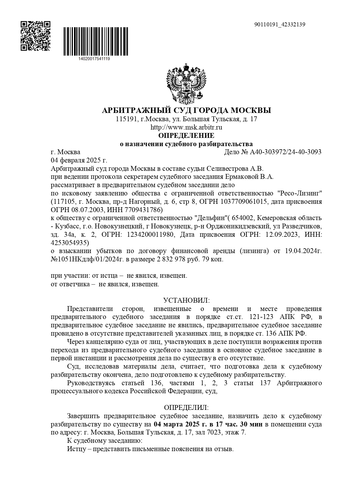 После расторжения договора лизинга при подсчете сальдо встречных обязательств оказалось что наш доверитель должен ООО "РЕСО-ЛИЗИНГ" 2 832 978 руб.
