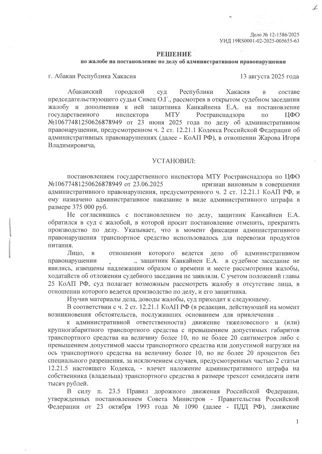 Оспаривание штрафов за превышение допустимой массы и нагрузки на ось