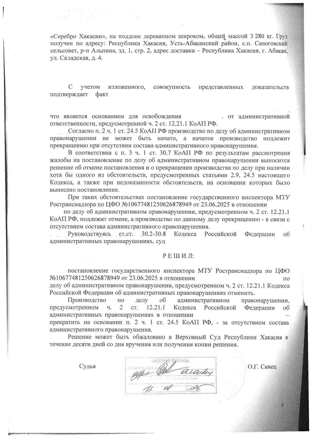 Штраф отменен.