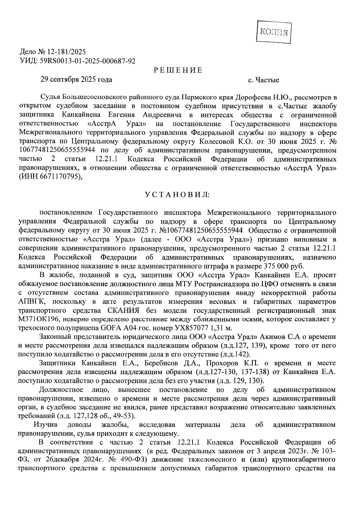 Штраф за перегруз отменен. Сэкономили клиенту 375 000 руб.