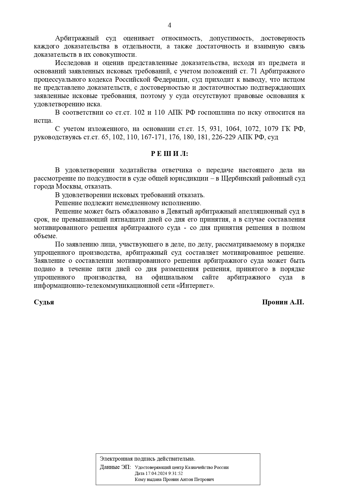 Мы доказали, что требования истца носят формальный характер и не подтверждены реальными обстоятельствами.