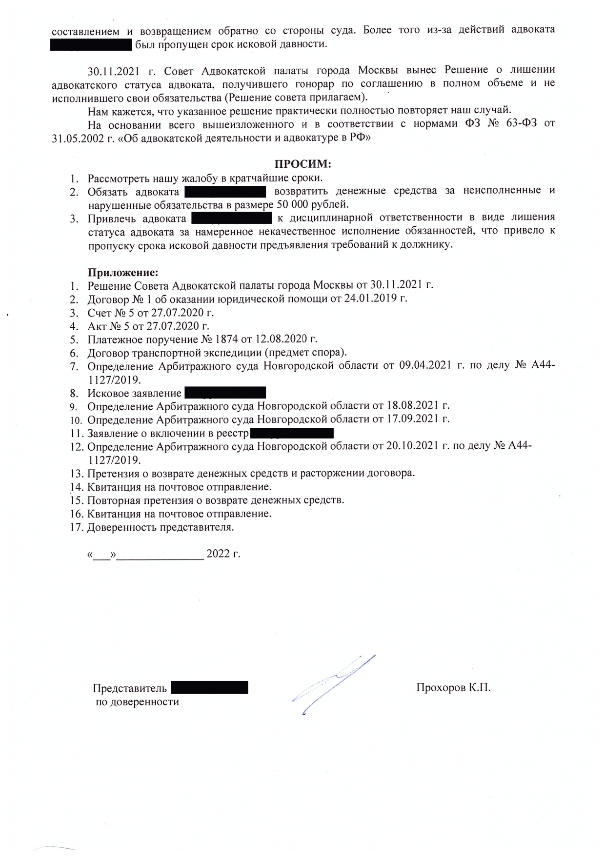 В досудебном порядке адвокат не согласился вернуть денежные средства;