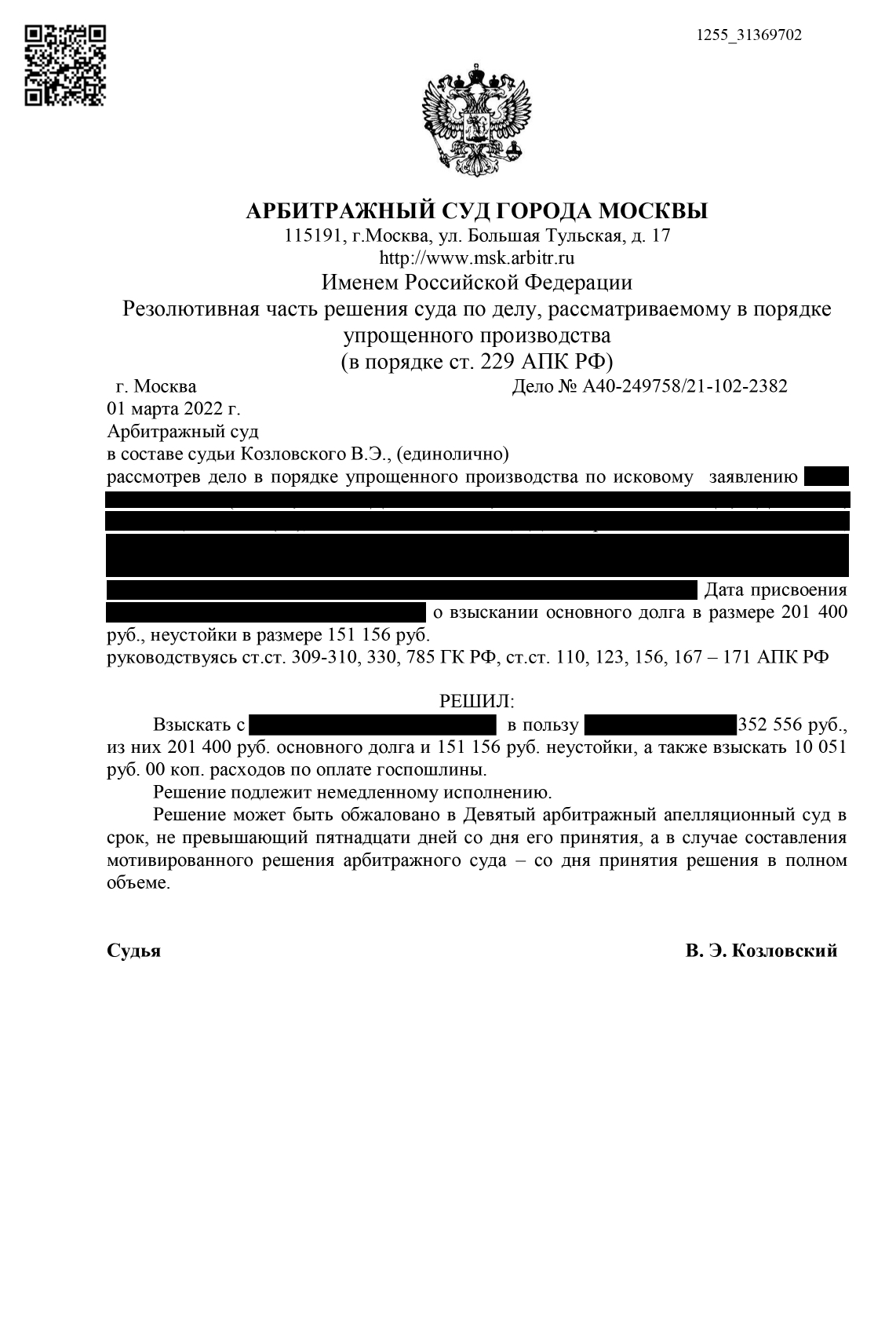 Суд взыскал в пользу нашего доверителя 500 000 руб.