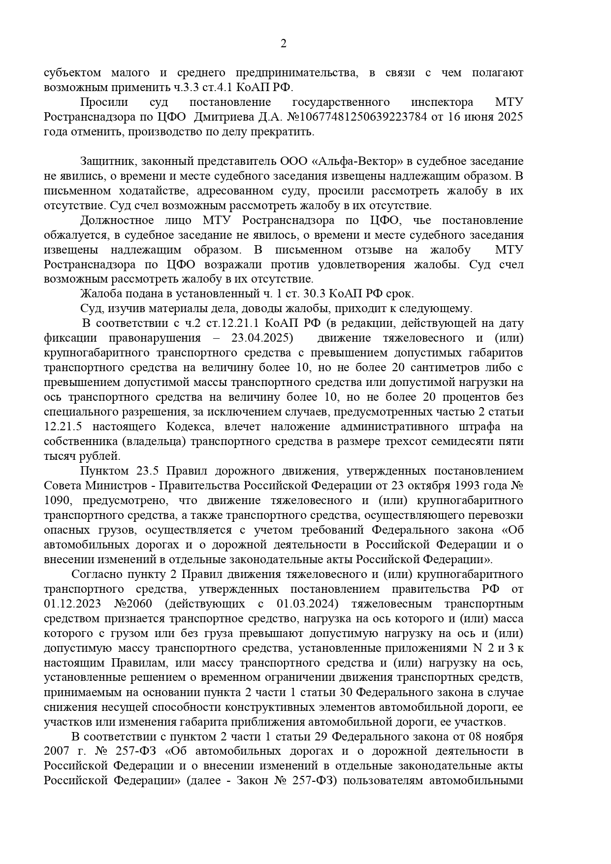 Фактическое нарушение было. Данная дорога не попадает в исключение в сезон просушки дорог.