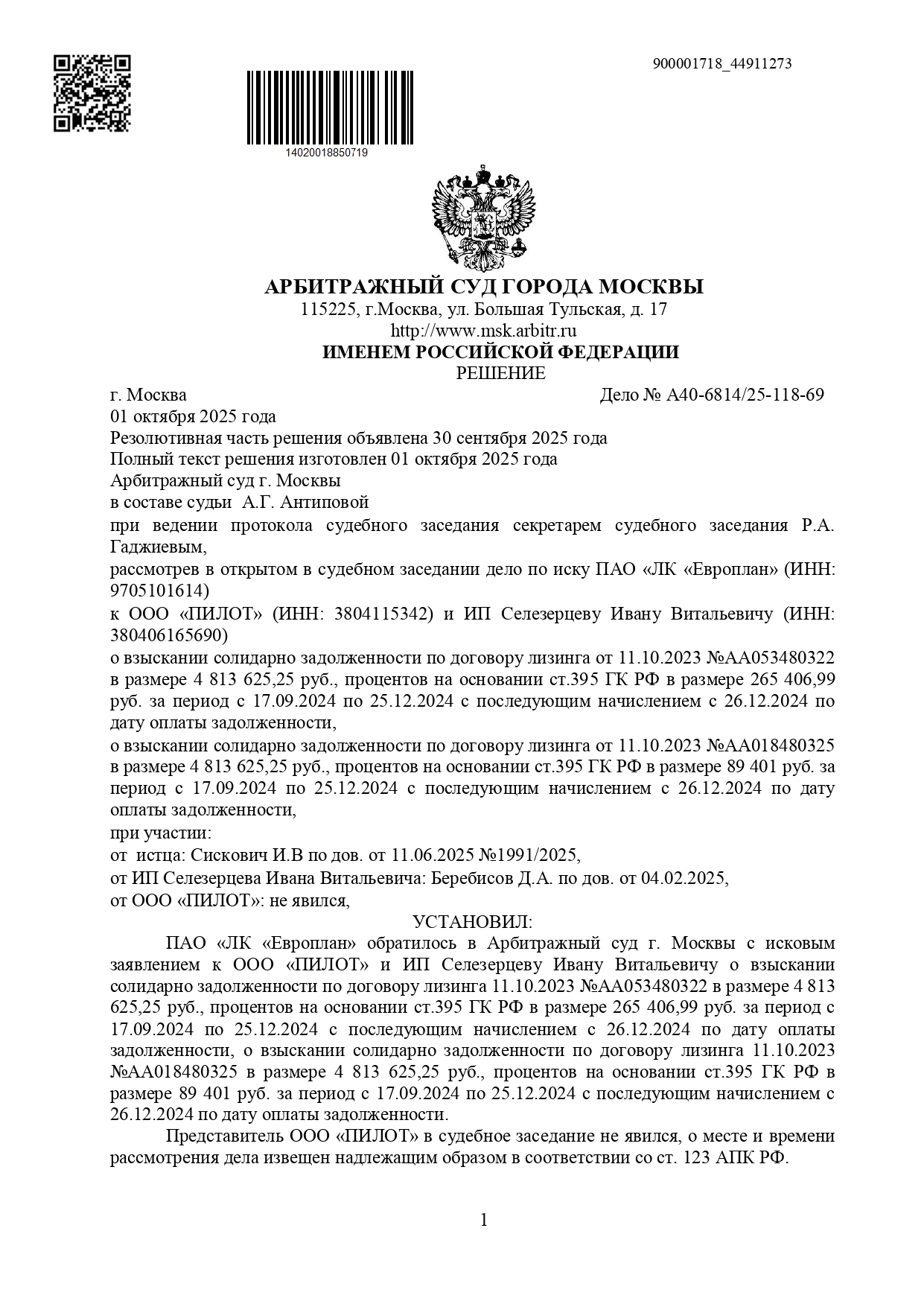 Сформировали позицию выиграли для клиента более года и сэкономили клиенту деньги. После решения суда провели переговоры с лизинговой и получили скидку и рассрочку оплаты еще на 12 месяцев.