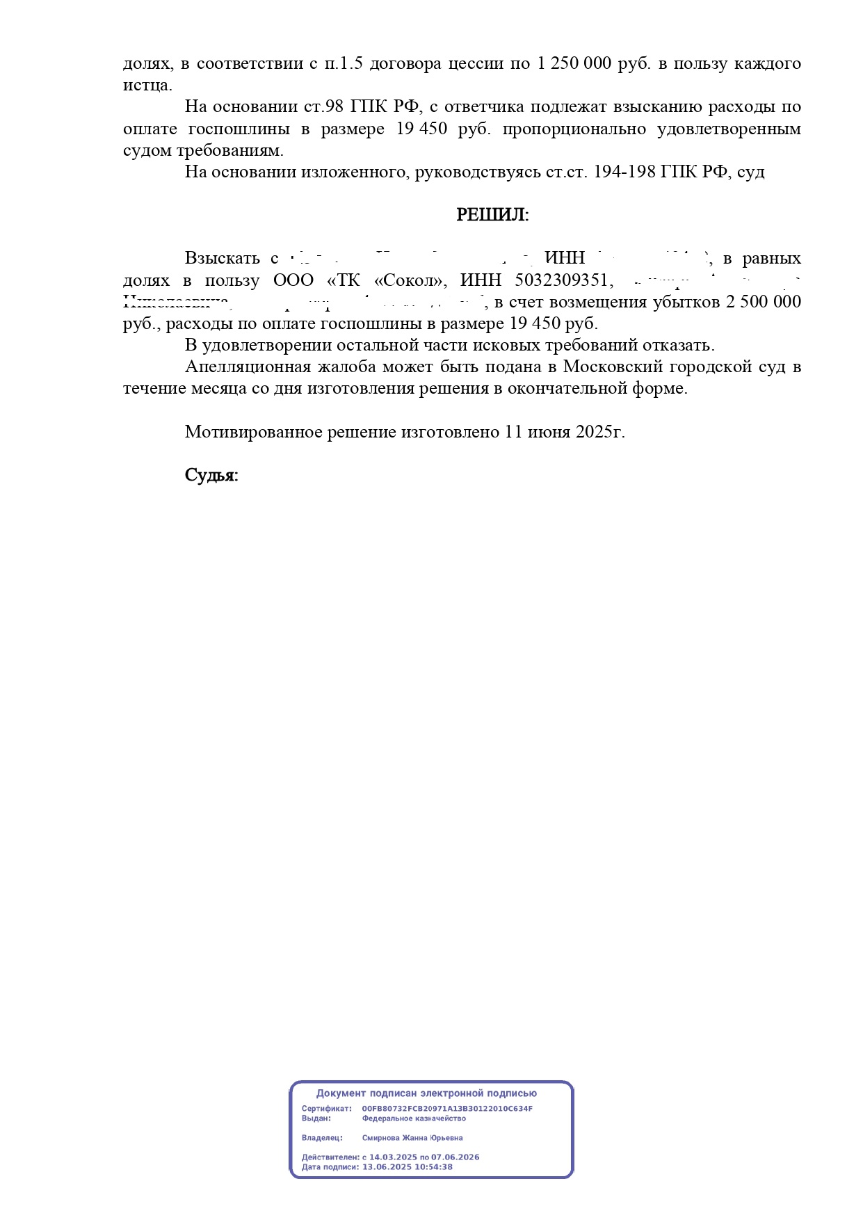 Выиграли дело и взыскали 2 500 000 руб.